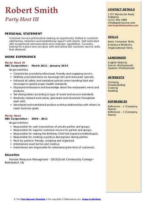 Host Resume Example